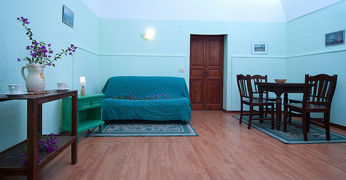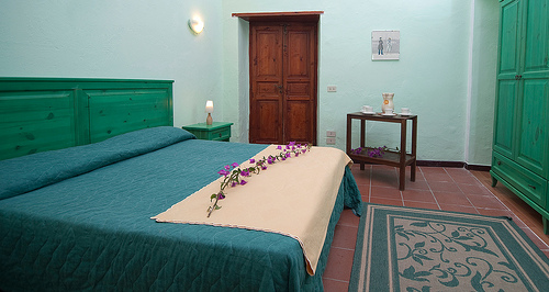 - Residence B, 25 sq. m, sleeps 2, composed of sitting- dining room with kitchen corner and night area with double bed, bathroom, and terrace or independent garden.