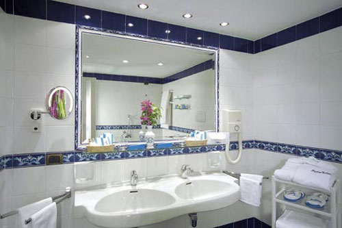 Camere: Le camere dell' Hotel sono in tutto 90, e sono divise in 4 tipologie: Comfort vista mare o parco, Superior vista mare o parco, junior suite e gran suite con salotto. Tutte hanno il balcone oppure il terrazzo, servizi con phon, minibar, telefono, aria condizionata, riscaldamento,radio, tv-sat, cassaforte elettronica personale. Alcune camere hanno anche il porticato.