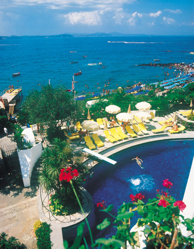 Posizione: L'Hotel Punta Molino è un albergo a 5 stelle molto raffinato, che sorge nel comune di Ischia di fronte al famoso Castello Aragonese. direttamente sul mare, mette a disposizione degli ospiti una spiaggia di sabbia e roccia con piattaforma in legno. Dista dal centro 400 mt.