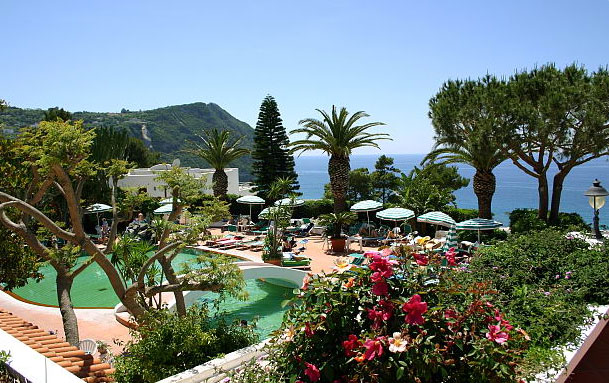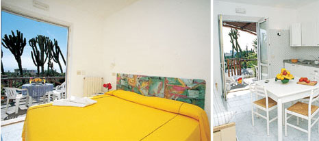 Posizione: L' Hotel Residence Villa Marinù è immerso nel verde di Forio d' ischia, ma poco distante dal mare e gode di un panorama bellissimo, con di fronte le isole pontine e stupendi tramonti sulla Baia di Citara.