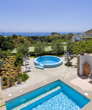 Cosa Offre: A disposizione tre piscine termali che attingono ad una sorgente profonda dove l’acqua all’origine è di 90°. Le tre piscine sono all’aria aperta, nel giardino esotico di Villa Miralisa ed hanno tutte l’idromassaggio. In più una grande piscina termale con acqua calda a 34°, un’altra più piccola con acqua ancora più calda che raggiunge i 38°, ed una piccina per i bimbi con acqua a temperatura ambiente. In questo spazio dedicato al sole ed al benessere c’è anche una cascata romana con un caratteristico sedile in pietra, per momenti di vero relax.