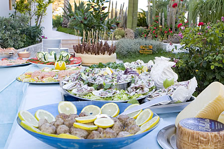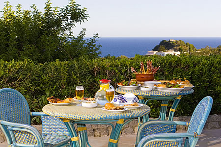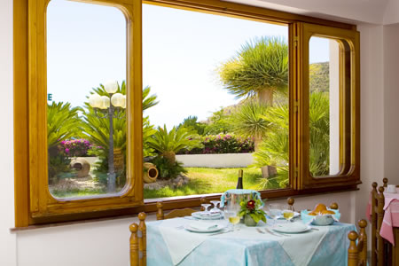 A Tavola: I nostri due ristoranti, uno interno e l’altro nel giardino sono le perfette cornici per momenti dedicati ai sapori veraci della terra ischitana; la colazione è a buffet internazionale, il pranzo a la carte, e per cena un ricchissimo buffet con tre primi e tre secondi, - tra cui sempre una pietanza di pesce – antipasti, contorni e fantasiose specialità come la mozzarella di bufala fresca con porcini caldi o il carpaccio di polipo all’insalata.