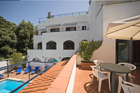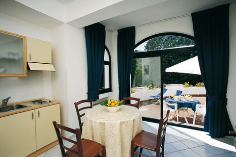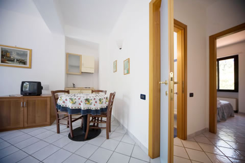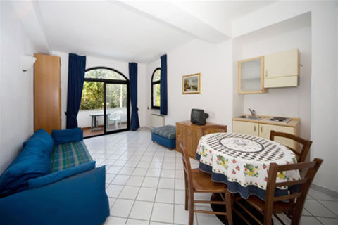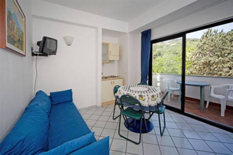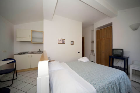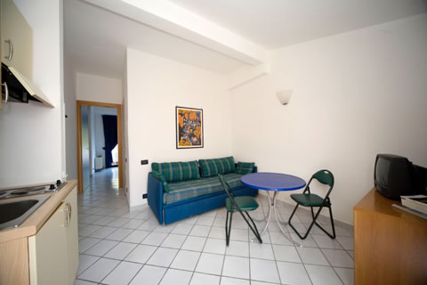 Appartamenti: Ogni appartamento è di per sè unico ma cura ed eleganza sono comuni a tutti. I Monolocali per 2 persone dispongono di sevizi standard quali: angolo cottura completamente accessoriato, bagno con doccia, TV color e balcone/terrazzo attrezzati. I Bilocali per 3 persone dispongono dei suddetti servizi standard oltre ad una camera matrimoniale e un soggiorno con divano letto(per una sola persona). Nei Bilocali per 4 persone i servizi sono gli stessi di cui sopra ma il divano letto è per due persone. E' inoltre possibile aggiungere un letto con il relativo supplemento. Nei 4 Bilocali Superior per 4 persone infine, vi sono ben due servizi privati di cui uno con doccia e ancora una camera da letto matrimoniale, soggiorno con angolo cottura accessoriato e divano letto-matrimoniale, TV e balcone o terrazzo attrezzati. Anche qui è possibile aggiungere un ulteriore letto con relativo supplemento.