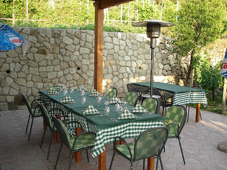 A Tavola: Il Ristorante è immerso in un vigneto di pregiata uva "biancollella", "greco di tufo" e "viognier". E' proprio dalla miscela di questi tre tipi di uva che viene fuori un vino tipico, esclusivo, armonioso e brillante. Gli ospiti del residence dovranno ordinare al mattino, questo ci consentirà di garantire freschezza e qualità di tutti i prodotti.