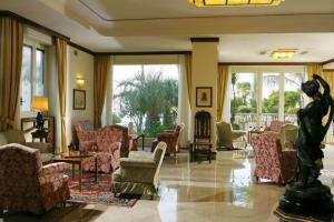 I saloni del Grand Hotel Royal vantano confortevoli divani, sedie e tappeti antichi. I raffinati mobili in legno intagliato, le scalinate in marmo, gli splendidi lampadari in cristallo e le lussuose decorazioni ornano l'intera strutturaa Sorrento.