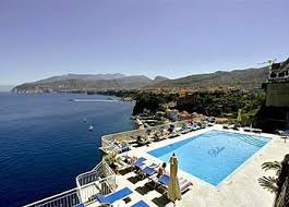 L' hotel è anche dotato di una grande piscina esterna, dotata di lettini prendisole, che si affaccia sul mare di Sorrento.
