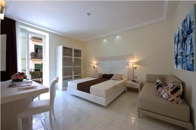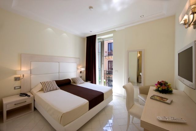 L'hotel offre ai suoi ospiti lussuose camere con aria condizionata indipendente e dotate di ogni più moderno comfort. Le camere dispongono di balcone con vista sull’area pedonale di Corso Italia, letti matrimoniali e singoli king size, bagni in marmo con doccia a cascata ed idromassaggio, set di cortesia ed asciugacapelli, televisori lcd di ultima generazione, telefono, pay TV, vetri ed infissi insonorizzati, cassetta di sicurezza e mini bar.