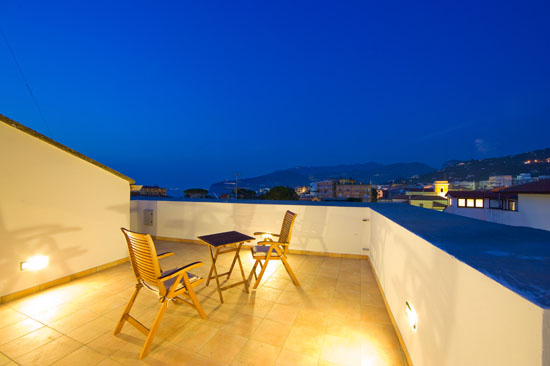 Si può utilizzare il grazioso solarium con vista mozzafiato su tutta la Penisola Sorrentina e sul Golfo di Napoli sul quale si staglia in lontananza l’imponente Vesuvio. Dal solarium si può anche ammirare la famosa Piazza Torquato Tasso su cui si affaccia la Chiesa del Carmine; la Chiesa di Sant’Antonino (protettore di Sorrento) e le verdi colline della Penisola.